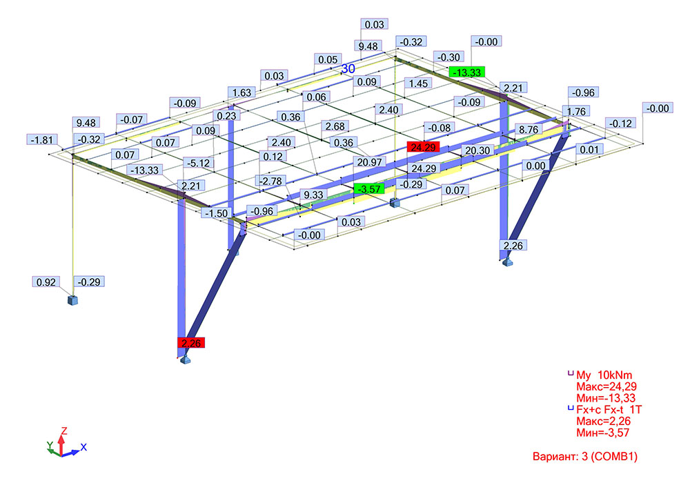 - Стропильные фермы, опорные колонны, главные балки и ригели
